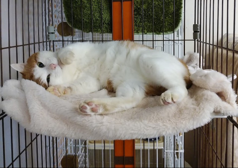 ケージの中ならお腹も触れるし、ブラッシングすればゴロゴロ言うし、撫でるのをやめると