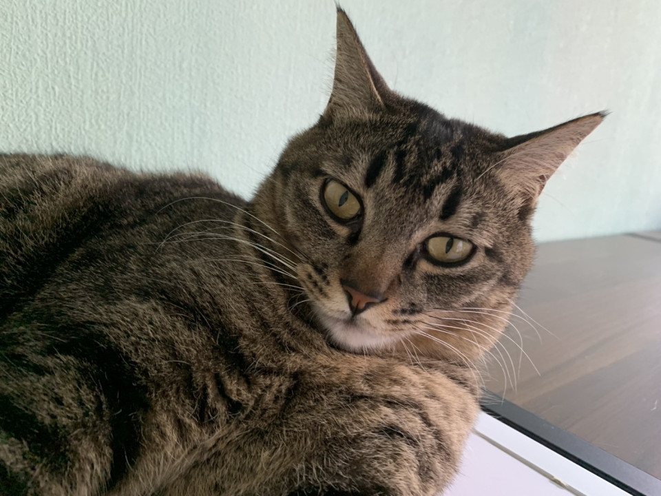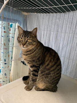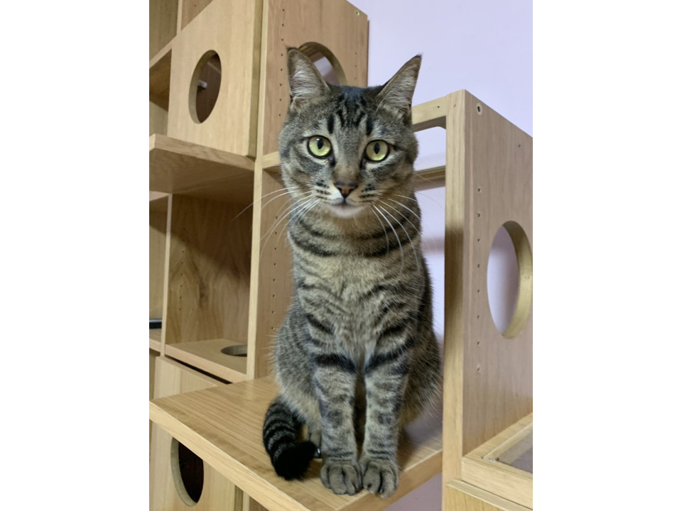 ちょっと悪顔が特徴的な男の子。保護時は、大変臆病で逃げており触れませんでしたが今では、デレデレの甘えん坊タイプに、気が強い子で、他の猫と相性が合う子合わない子がおります。