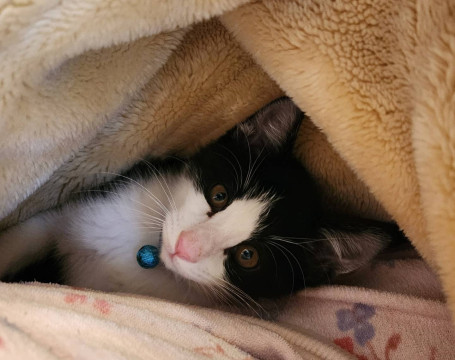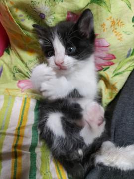 ハチワレの、可愛いヤンチャ坊やです。