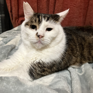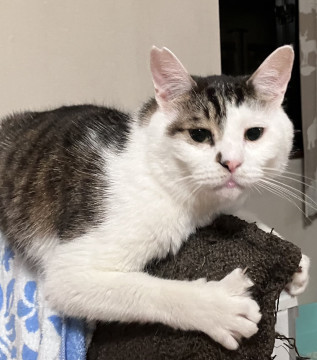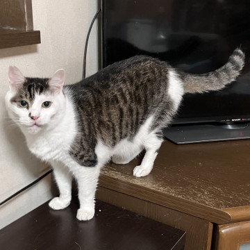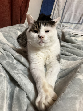 ○推定7歳くらい(2025年2月時点)のキジ白の男の子です。