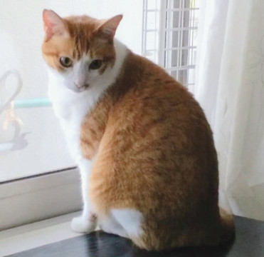 口元の茶色いブチと、中途半端な長さの可愛いしっぽがチャームポイントです。
