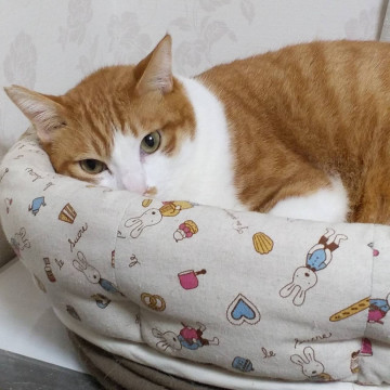体重5.5キロ、ちょっとぽっちゃりな茶白のエルくん。
