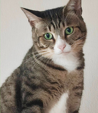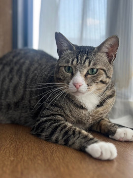 ○推定5〜6歳くらい(2025年3月時点)のキジ白の男の子です。
