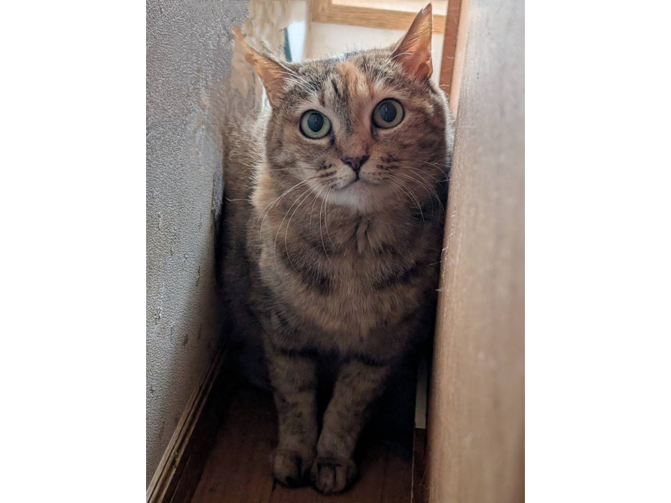 ちょっと怖がり。お魚大好き。隠れてばかりでしたが、すんなり撫でさせてくれるようになりました。撫でるのをやめると手を出してもっと…と催促します。抱っこは苦手。