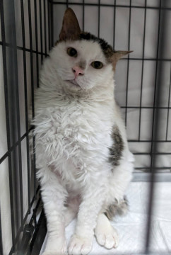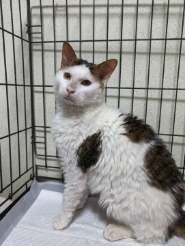ちょっと足腰の筋肉が弱めな気がします。そのせいか他の猫にもすぐ譲るような怖がりでしたが、最近は他のオスと対等にニャンプロをしたり、用心しながらもチュールを食べますが、優しい子なのでおやつ競争ではすぐ他の子に譲ります。