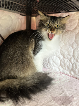 動物病院に連れていくにもキャリーに詰めるのに時間もかかるし、長毛ちゃんなのでブラッシング必須ですがとてもじゃないけど今現状触って抱っこが出来るような状態でもありません。