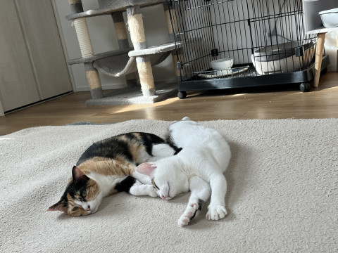 預かり宅では他の猫と変わらず過ごしていますが、慣れるのには少し時間がかかる子なので、ちょっとずつ家族になっていく過程を楽しみたい人にはぴったりの猫さんです。
