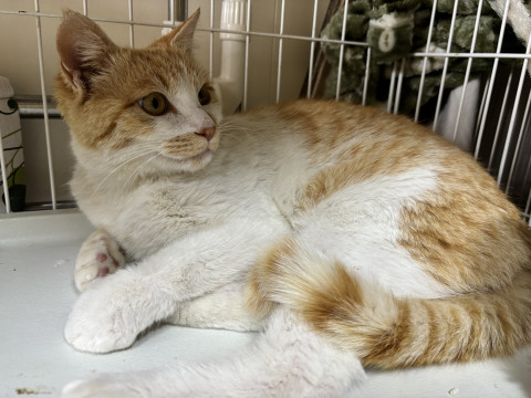 知人宅に少し前よりご飯をもらいに来るようになりました。とても人懐こく、保護に至りました。迷い猫かとも思い警察、保健所には届出済みですかおそらく野良だったかと思われます。