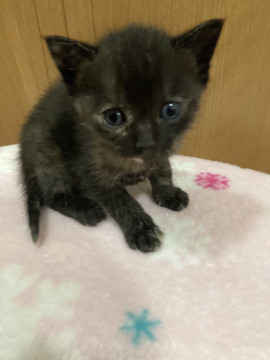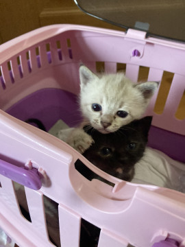 ある会社倉庫内に子猫が三匹いたそうです。見つけたかたが一日自宅にてお世話され、翌日センターに届けられました。三匹のうち一匹は保護当日に亡くなってしまったそうです。