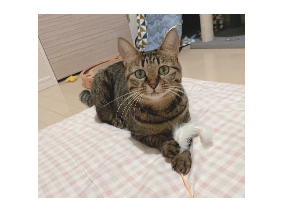 最初はシャーと威嚇していましたが、最近では人間ともオモチャであそぶようになりました。