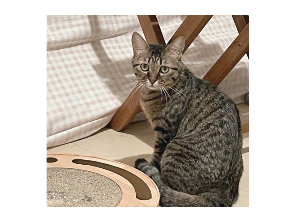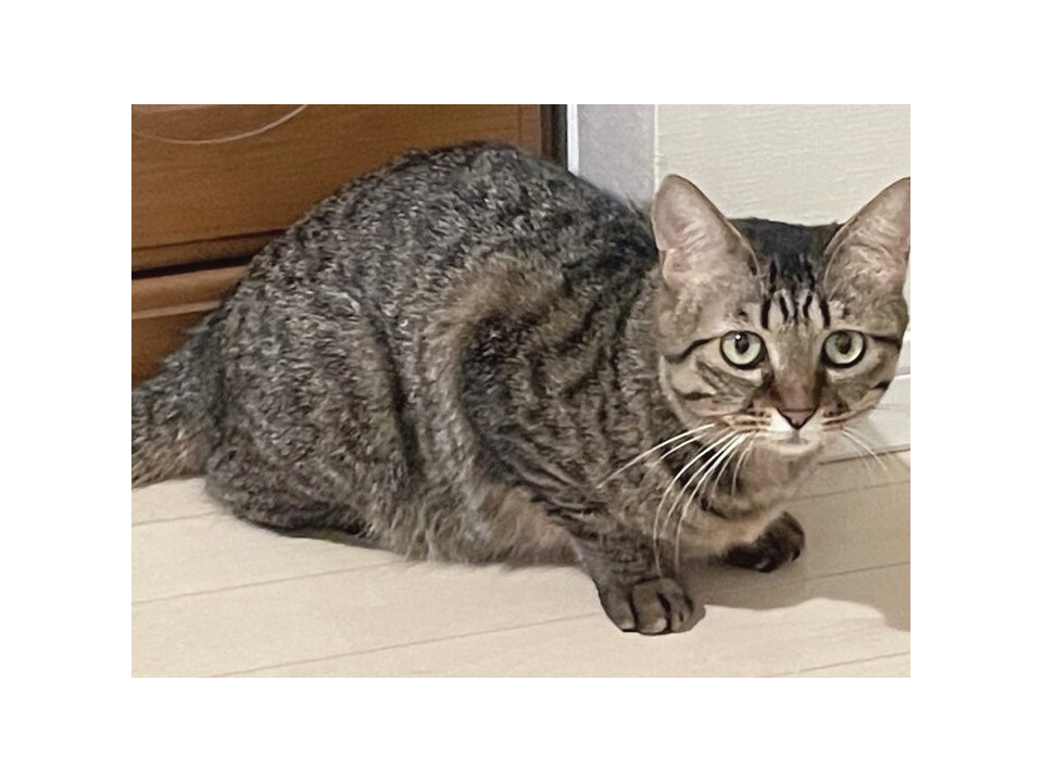 まんまるお目目の困り顔がとっても可愛いキジトラの女の子こあちゃん。