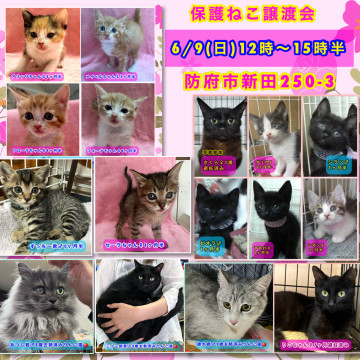 6/9(日)防府市新田250-3での譲渡会に参加予定です。