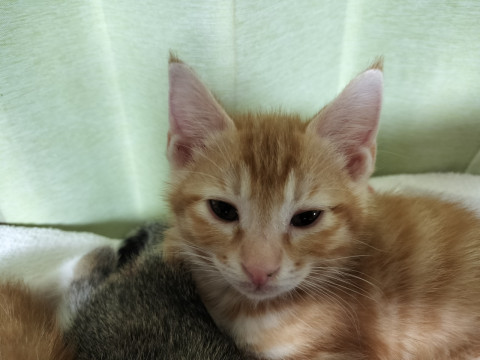 保護直後から人間に対してもあまり警戒心はなく、抱っこもできます。大人の猫も犬にも慣れています。