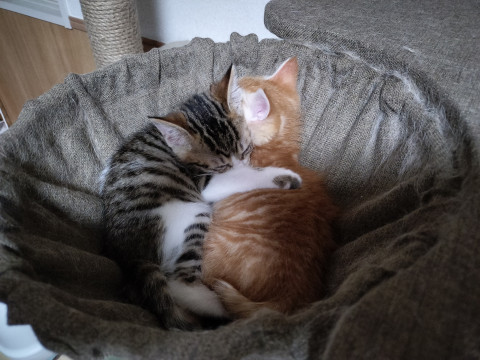 ご飯も良く食べて、お腹が空くと「ミーミー」鳴いてご飯ちょーだいをする姿が可愛いです。
