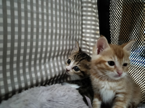 雨の日に会社の近くで子猫の声が聞こえたので、外を見ると子猫が2匹で鳴きながら走っていく姿が見えました。5メートル先はとても交通量が多い幹線道路があるため、慌てて保護しました。