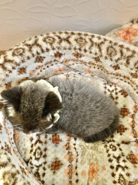写真では分かりにくいのですが、毛色が本当に不思議な色で黒でもグレーでもなく、背中の先の方は白っぽくなっています。