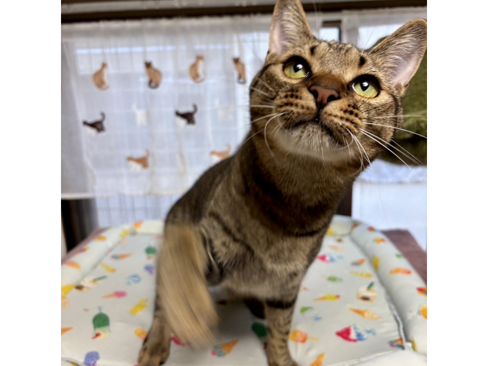 初めは慎重で怖がりな面もありますが、かなり人慣れが進んできて、人の傍にきたり、ナデナデさせてくれたりします。おもちゃが大好きで、思いっきり遊んだあとはコテンと寝てしまいます。