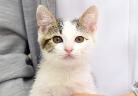 人間の保護下で生まれ、母猫の愛情を受け、兄弟と身を寄せ合って育ちましたので、屈託のないやんちゃボーイになりました。穏やかに誰にでも抱っこさせ、ゴロゴロいって甘える、人なつこい良い子です。