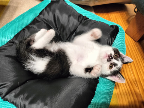 まだ小さいのでお留守番の少ないご家庭や先住猫ちゃんのいるご家庭に行けたら幸せだなと思っています。