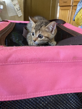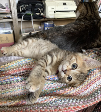 知り合いの方のお庭にお母さん猫が子猫3匹産んだので、直ぐに保護してミルクから育てられたので、人にもとても慣れています。子猫ちゃん2匹は里親さんに貰われました。