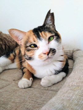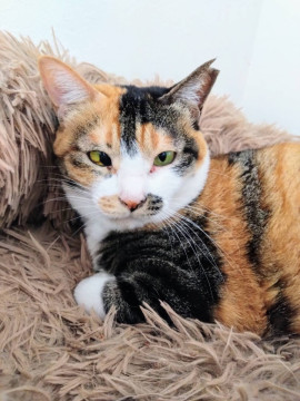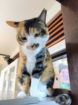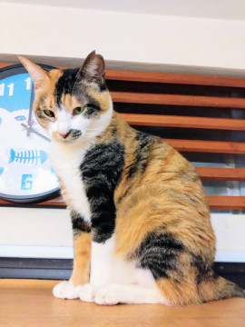 ○推定7〜9歳くらい(2025年6月時点)の三毛の女の子です。