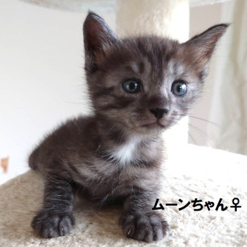 ★ムーンちゃん 濃いめのグレーにトラ柄模様、胸とお腹の一部にエンジェルマークがチャームポイント