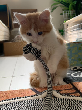 最初は臆病ですが、すぐ甘えん坊になり、遊ぶのが大好きです。