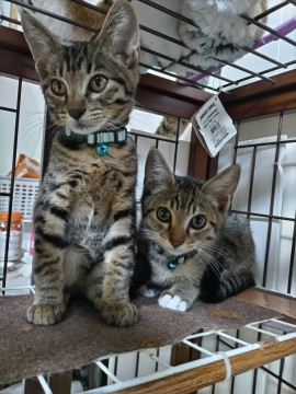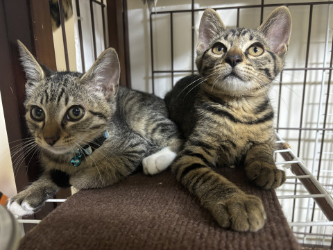 ベンガルっぽいはっきりした甘えん坊くんと、足に白いソックスを履いてるおっとりくんの兄弟です。