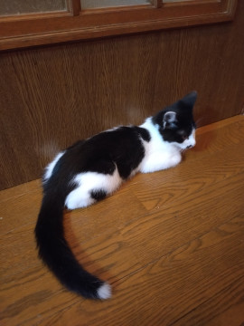 黒白の長くてきれいなしっぽの男の子