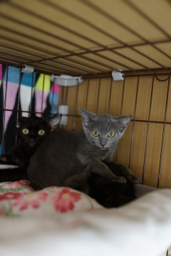 そのうちのメス1頭です。できれば、グレーのしきちゃんと一緒にずっとのおうちが決まれば良いと思っています。