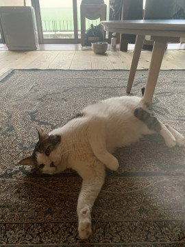 TNR対象の子として出会いました。保護時はシャーシャーの過去1暴れん坊でした(´-`)今はデレッデレの女の子大好き!いつもお腹を出してゴロゴロしてます。女の子達はみんな爪切りが始まるとアーサーの元に隠れます(^^)頼りにされてるボスです♪男の子には厳しめです。ゴンちゃんとはボス同士、犬猿の仲です。