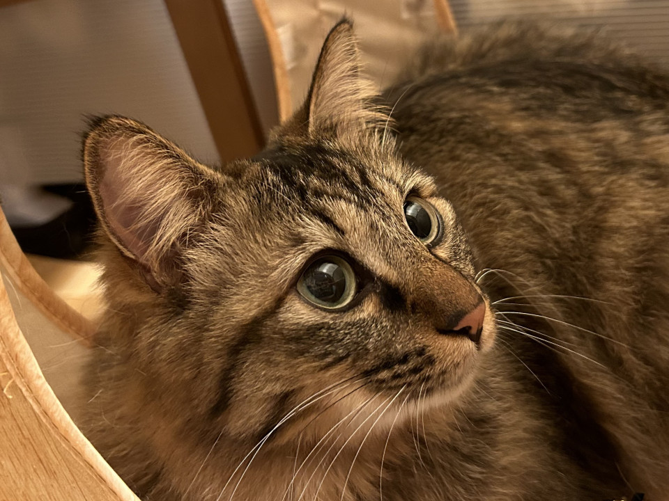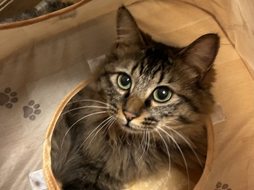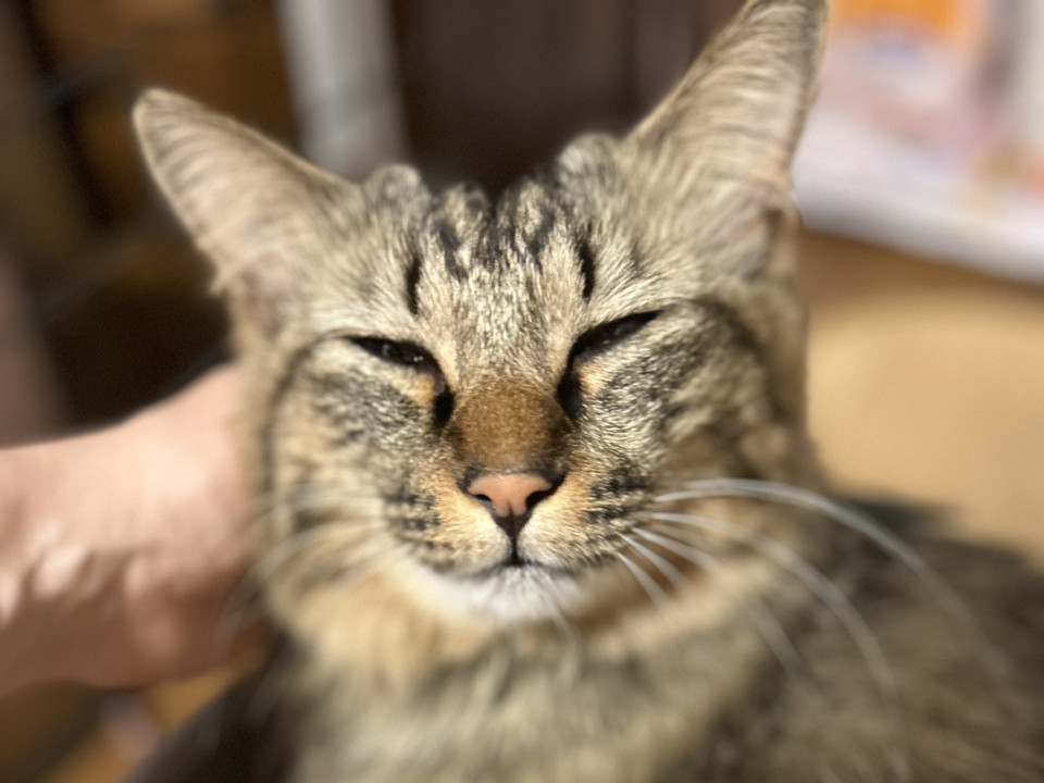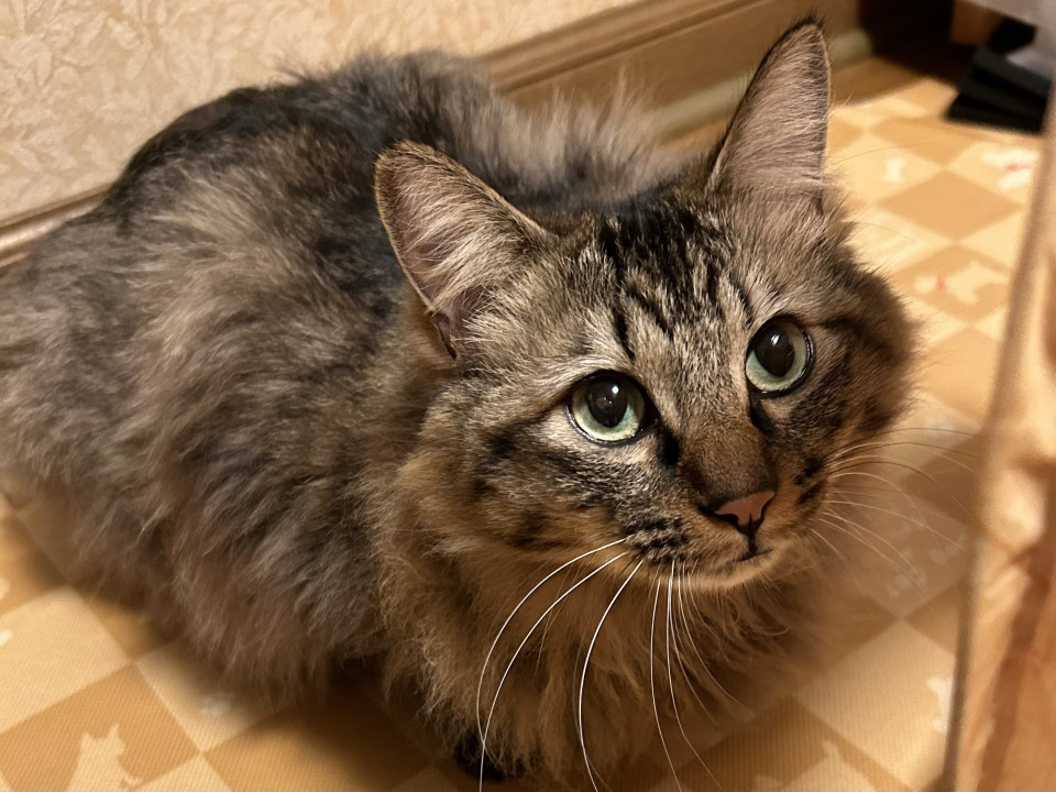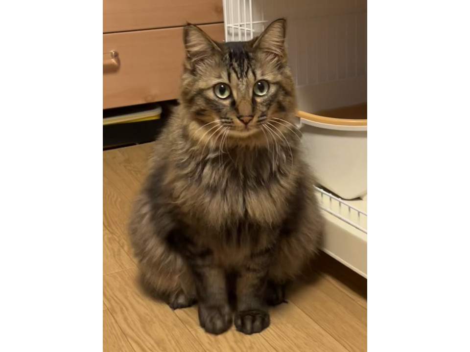 保護したときは短毛キジトラでしたが、成長するにつれ、フッサフサに✨足も太く、顔がとっても可愛いので、洋猫の子孫かもしれません。