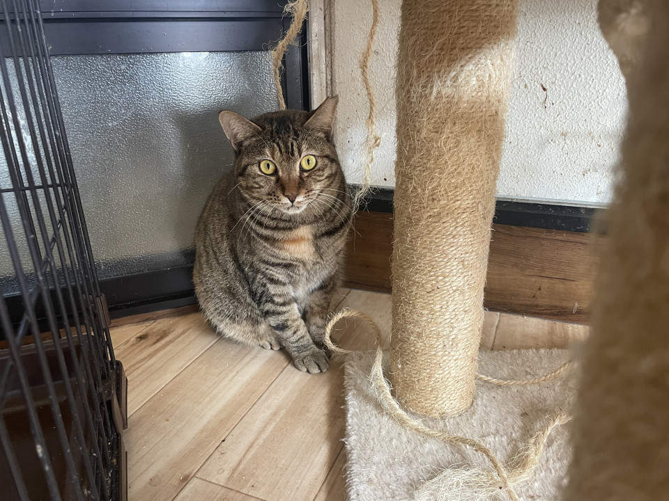 直方市で今までノラ猫として過ごしていた猫が保護猫になりました。今まで人間を避けて怖がって生きていたので人なれしておらず、シャーシャー言いますが2匹の子供を守るためにお母さんは必死なのです。比較的小さめの体形で「よつば」「むつば」のお母さんがこの子です♪