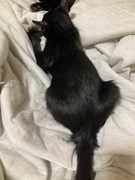松山市愛護センターから乳飲み子の時に引き出し、ミルクで育てました。