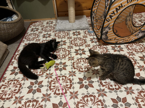 同じ場所から一緒に保護した『マドレーヌちゃん』とはお母さんが違って姉妹ではありませんが、月齢が近いので良い遊び相手です。