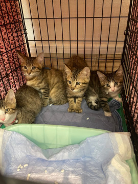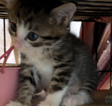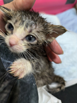 動物愛護センターから、約3週齢の、4匹兄妹を引き出しました。引き出して直ぐに、動物病院へ健康診断に連れて行くと、2匹が倒れている状態でしたので、そのまま入院治療をしました。