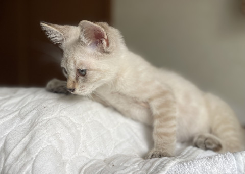 シャムミックス(縞模様が出るタイプ)ブルーの目です。