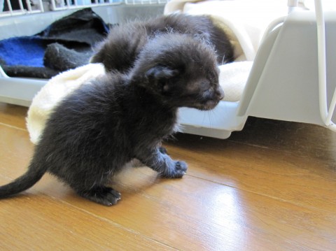 きれいな黒猫です。兄弟の中では一番活発でもうのども鳴らせます。ミルクから育てているのでとても人なつこい子に育つと思います。