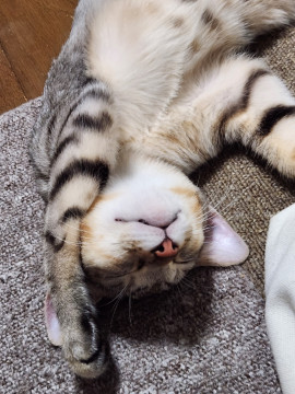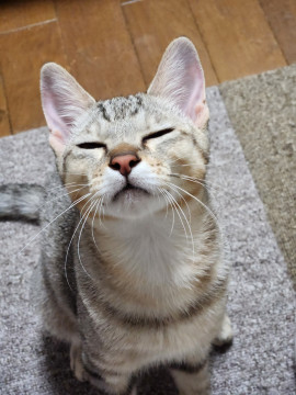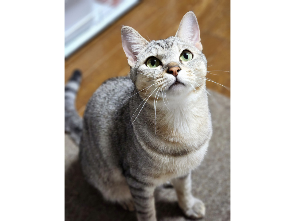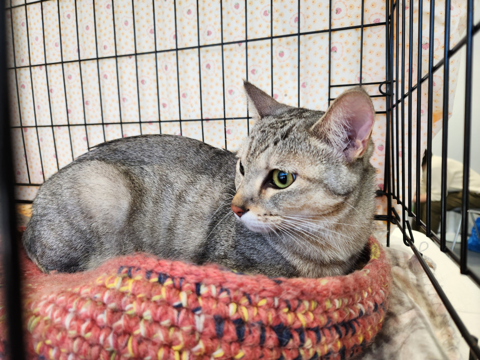 サバトラとキジトラと茶トラを合わせたような柄で女の子らしい綺麗な子です。