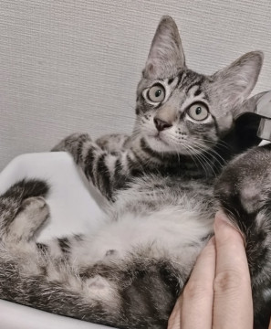 とても甘えん坊なので、きょうだいでのお迎えか、優しくしてくれる若い先住猫のいるおうちが希望です。