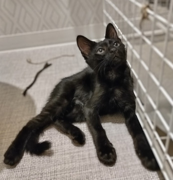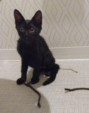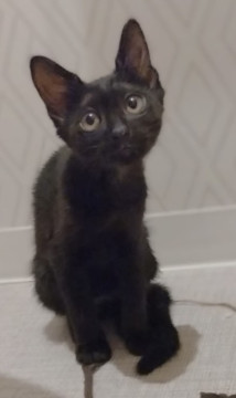 黒猫らしく?!好奇心旺盛、人が大好き、遊ぶの大好き!顔を見ると「遊ぼ!」と寄ってきます。