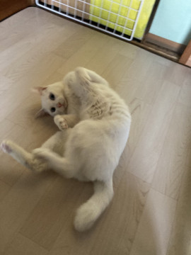 もうすぐ抱っこもできそうです! 帰宅しようとドアへ向かうとドアの前で「帰らないでぇ~」とゴロンします。