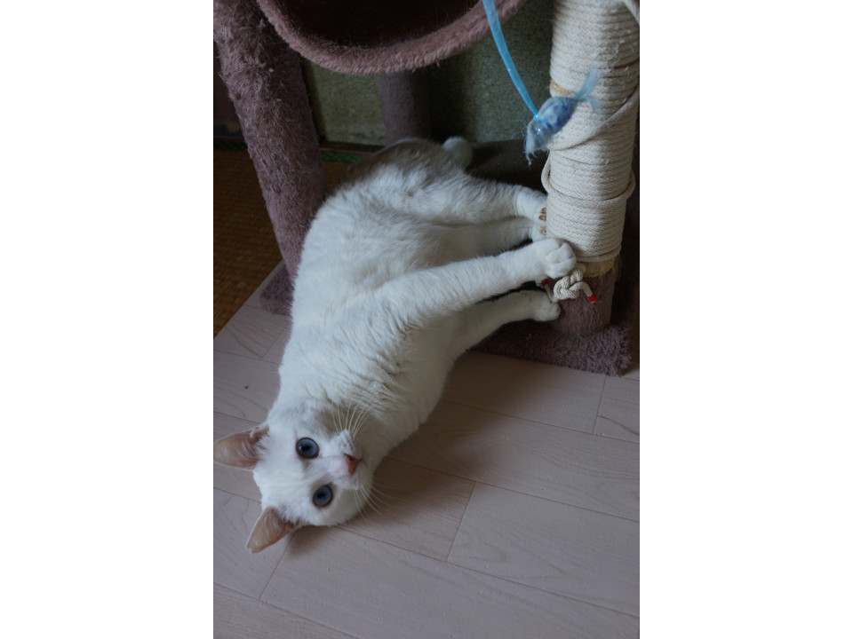 抱っこはできませんが、ナデナデOK♪ お尻ぽんぽん、最近ではゴロンと転がってお腹ナデナデできます。