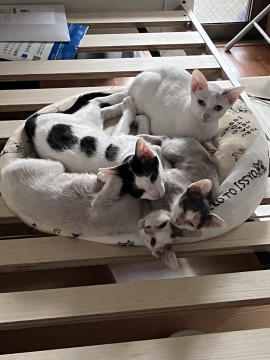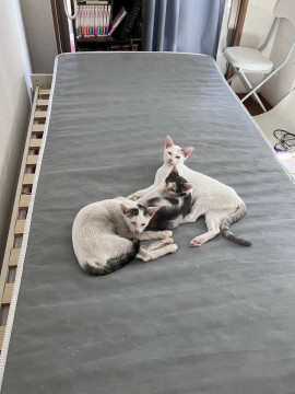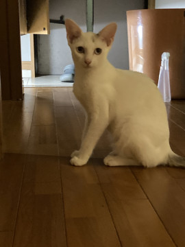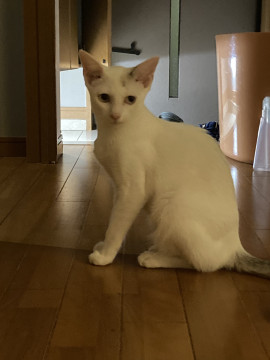 ふみちゃんはとても綺麗な毛並みで、白猫さんに少し頭と尻尾にグレー色が入ってます。