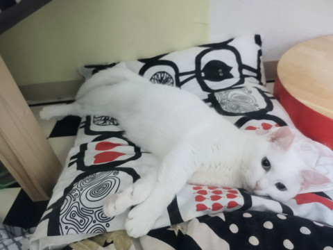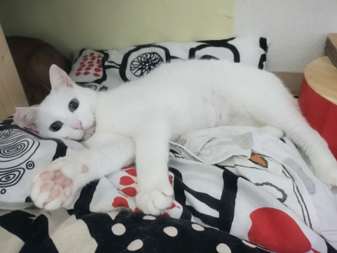 少しまだこわがりな面はありますが、お尻トントンが好きな女の子、猫さん同士ではどの子とも仲良くできるので、ひとりで寂しがっているお友達募集中の、男の子の先住猫さんのいるおうちが良いかなと思います。