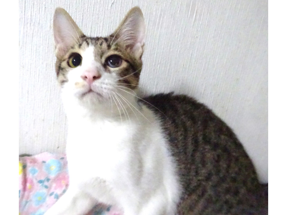 性格: 初めて人と接触したときから、目の治療なので、嫌な記憶になってしまったかもしれません。 ケージに近づくと目薬かと思って逃げたりしますが、すぐに、捕まります。目は治療したので、かなり綺麗になりましたが、片目に結膜の癒着がありました。 去勢手術の時に、目の結膜癒着を剥がす手術をしました。 かなり癒着部分は取れましたが、まだ残っているところもあります。 大きくなって自然に癒着部分が剥がれるかもしれませんが、今はまだ癒着部分が残っているので、時々、目をしょぼつかせたりします。 ビビりの所はあるけれど、威嚇なく抱っこ出来、爪切りは大丈夫です。ちょっと座っていると乗ってきて甘えます。足元にスリスリしたり、抱っこをせがんだり、甘えん坊です。人が多いところではビビリぶりを発揮。普段の様子と違います。類くんの目の事をご理解くださり、甘えん坊だけどビビリであると理解くださり、類くんのペースに合わせて、ゆっくりと馴らして下さるお家を希望しています。 お届けは千葉県内で千葉市幕張から車で1時間位が希望です。
