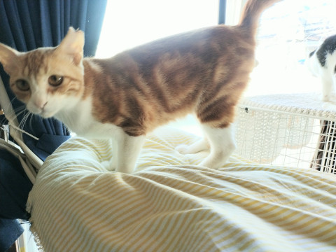 ぐるぐる模様と、長〜いしっぽや手足が特徴の活発な男の子です。仲間と群れるというよりは、今は単独な行動を好むように見受けられます。人に対しては友好的です。