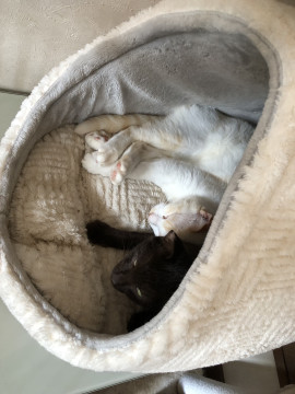 クリーム色のシャム柄の子と仲良しで一緒に遊んだり寝ていることが多いです!