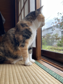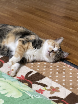 一旦は地域猫でしたが、ある日突然背中とお腹にたくさんのボンドを付けて現れました。