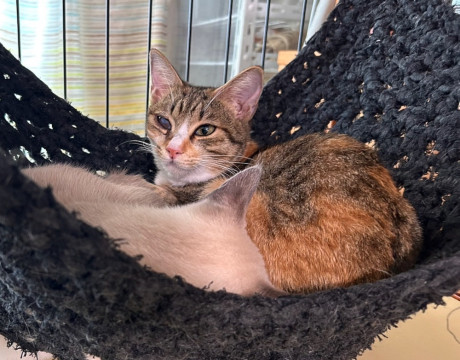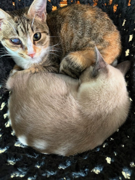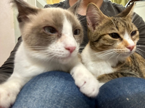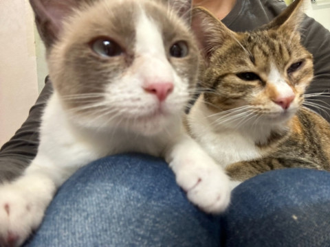 シャム・ミケ・キジの3姉妹でやってきてキジの子は別グループの同じ月齢の猫とトライアルに行きました。シャムとミケも姉妹でのお迎えが可能な方を優先いたします。